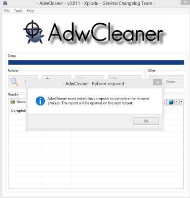 9. Setelah Semua Berjalanan Dengan Baik Maka Software AdwCleaner Akan Meminta Anda Me-Restart/Reboot Komputer Atau Laptop Anda Supaya Dampak Dari Virus Yang Sudah Dibersihkan Untuk Anda Sudah Hilang